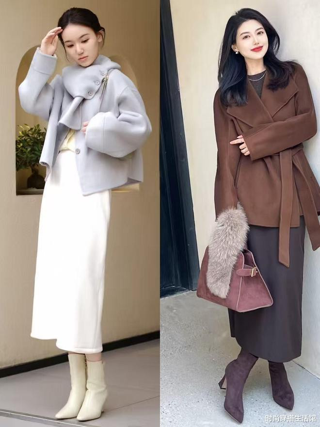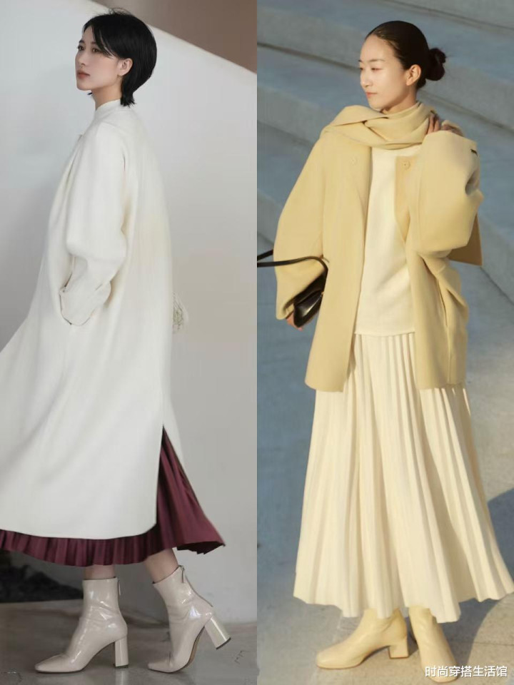 不管是冬天穿大衣还是过年穿大衣,我们怎么能少了靴子呢,主要是因为选择靴子穿搭不仅能够满足我们的保暖同时还可以满足增高的穿搭需求,对于小个子或者是中年女性来说最常见的就是短靴,我们可以选择低跟或者是粗跟的短靴,不仅能够增加身高同时还能凸显出搭配的稳定性,此外如果担心尖头设计的短靴会挤脚的话,建议大家可以选择圆头或者是方头的短靴,搭配上裙子和大衣瞬间就可以优化身材比例。